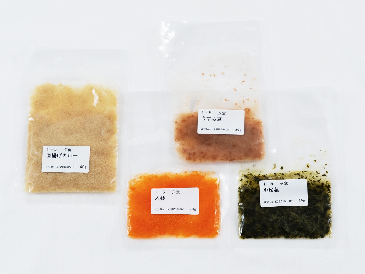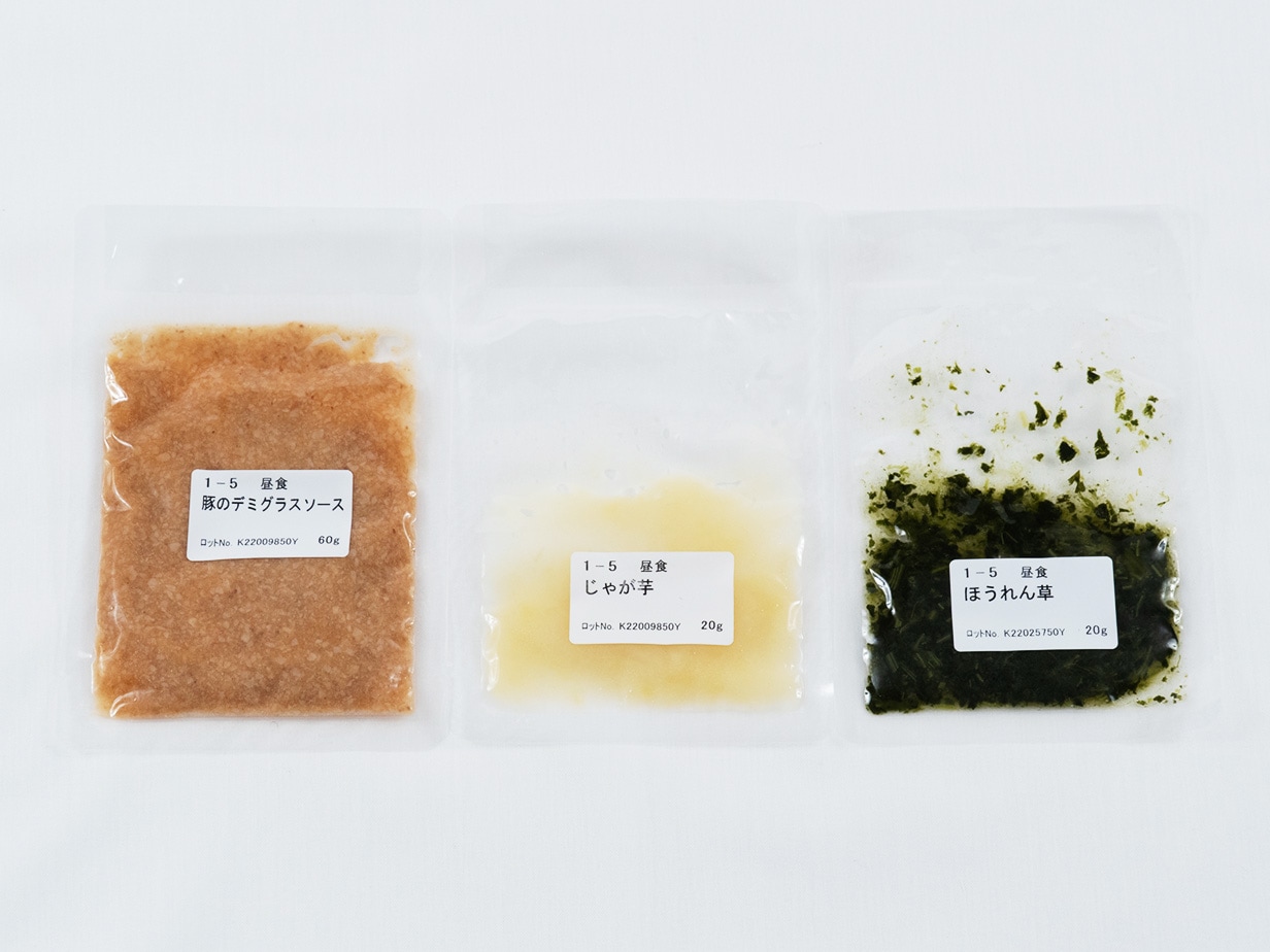 トップ > 商品 > ムーミーくんの刻み食 > ムーミーくんの刻み食「1週目の5」 ムーミーくんの刻み食「1週目の5」 美味しさと食べやすさを両立した「ムーミーくんの刻み食」を産学連携で開発しました。 一定の品質(UDF【歯茎でつぶせる】に準拠)を保っているので安心・安全はもちろん、衛生管理も徹底して製造しています ご購入には会員登録が必要です。 ログイン 新規会員登録